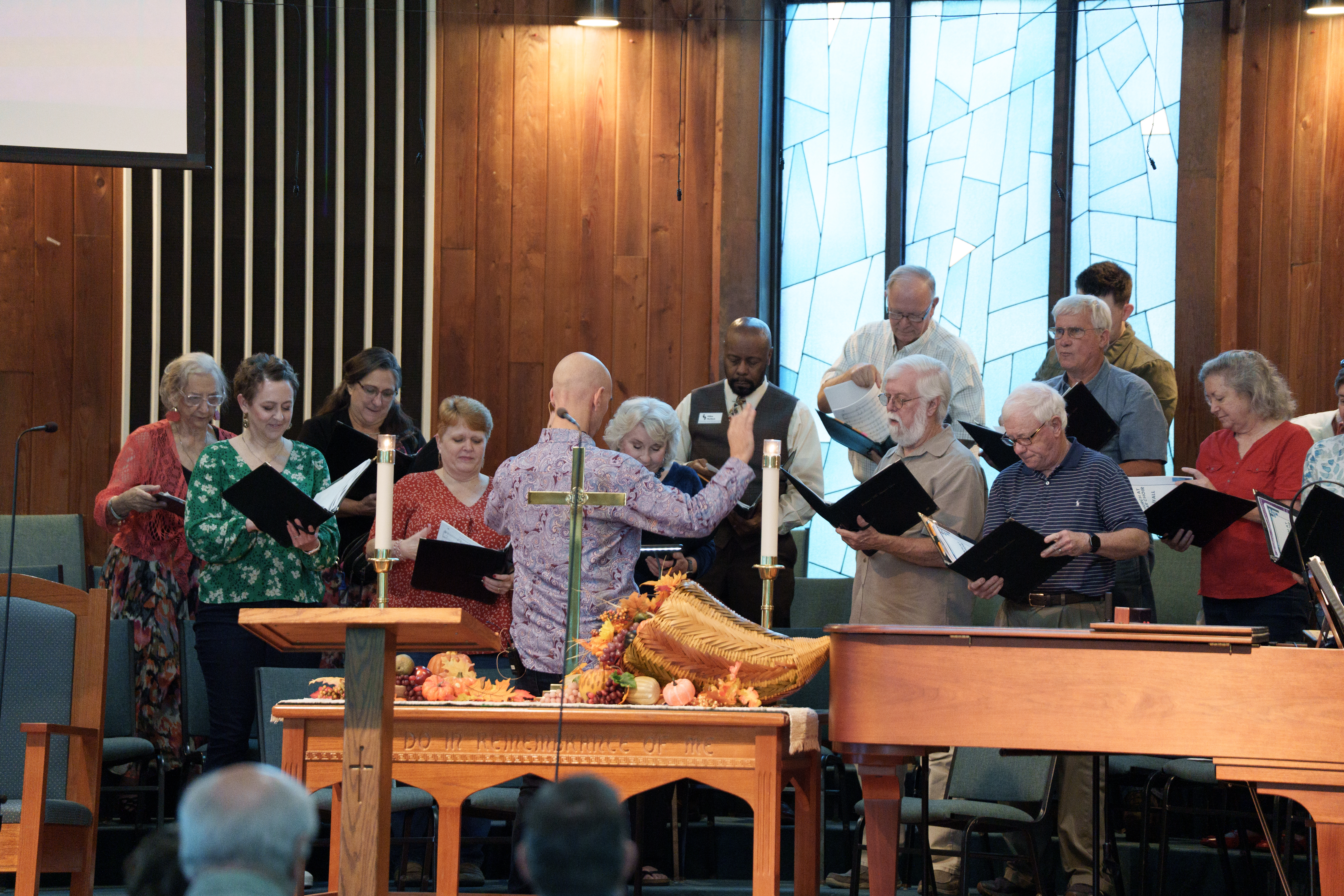 Located in the Sanctuary, in these services, you will hear the choir, handbells, ensembles, orchestra, and familiar hymns.